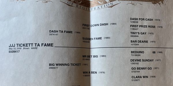 Electra was a great Futurity horse, and for the last 6 years she has been a broodmare. She is back in shape & running again. Her dam was a huge winner all over the US & there are not many daughters of hers available. run her now, breed her later.