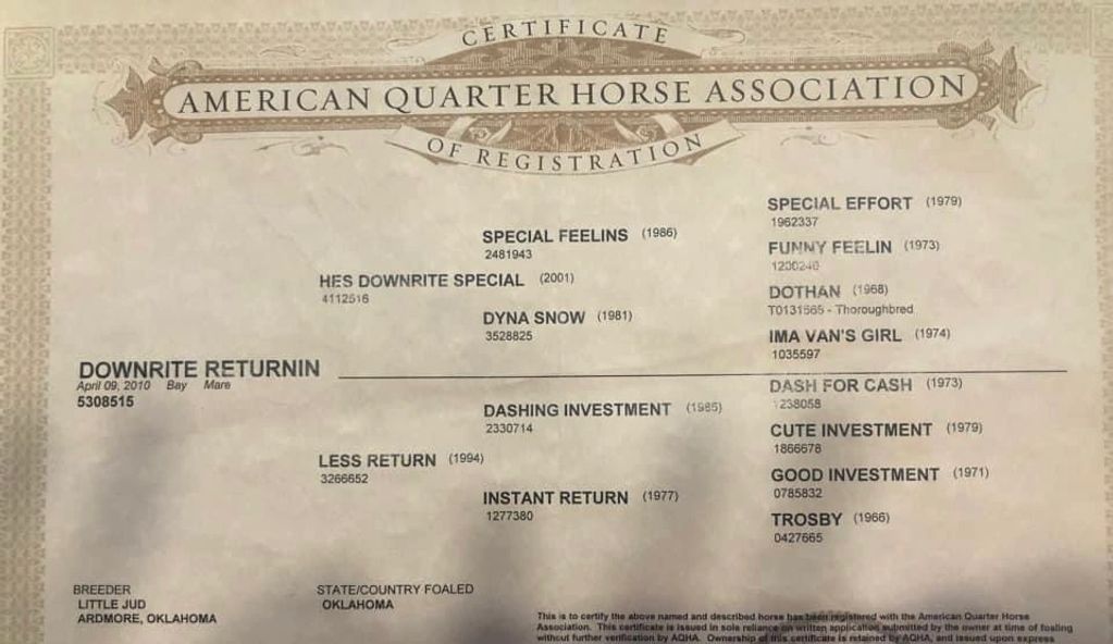 Money Talks Futurity Champion! Paid in full to Future Fortunes.